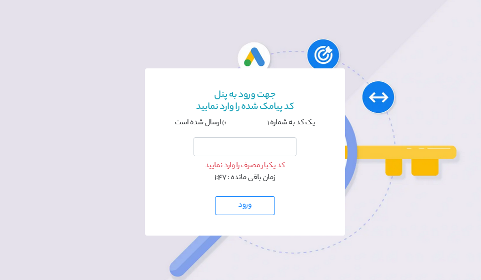 ✔کدی که از طریق پیامک ارسال می شود را در کادر خالی وارد کنید